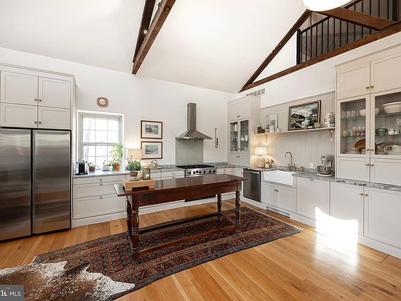 Step into a world of refined elegance and modern comfort with this exquisitely renovated former schoolhouse built in 1880; this home offers a seamless blend of historic charm and contemporary luxury, providing a truly exceptional living experience. Nestled in picturesque W. Marlboro Township and adjacent to a serene horse farm, this home is ideally located in the Unionville-Chadds Ford School District, a short drive to The Whip Tavern and The Laurels Preserve. The interior has undergone massive renovations, with particular emphasis on the complete kitchen renovation, luxurious family room, and 2nd-floor bedroom. All this with designer paint colors & changes in almost every space. The kitchen now features cabinets close to 10' tall, boasting dramatic effect and impressive height, creating a true focal point for the home. Leathered granite counters, a farmhouse porcelain sink, and new stainless steel appliances, including a custom stainless steel hood over the existing 6-burner Viking stove, elevate the heart of the home. The kitchen's cathedral ceilings with exposed beams, original pine wide plank hardwood floors, and oversized linen drum shade chandeliers add a touch of modern elegance to the space. The kitchen is within a large great room with a spacious dining area. In addition to the kitchen, the hallway, banister, 2nd-floor bedroom, and family room have also been renovated. The family room features all-new engineered hardwood hickory floors and a stunning oversized circular chandelier from Aurhaus. The spacious primary bedroom boasts a large walk-in closet & newer carpeting. These updates, coupled with exterior features such as brick and freshly painted wood siding, an expanded back patio, and breathtaking views of the Chester County countryside, combine to offer the perfect fusion of timeless charm, modern amenities, and tranquil countryside living.