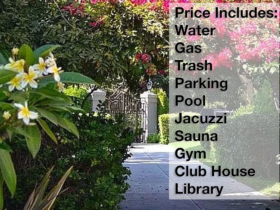 Price includes: Gas, Trash, Water, Parking, Pool, Gym, Jacuzzi Spa, Sauna, On Site Laundry.