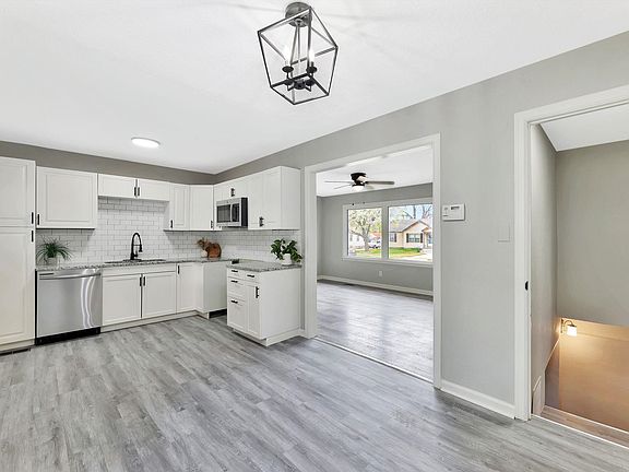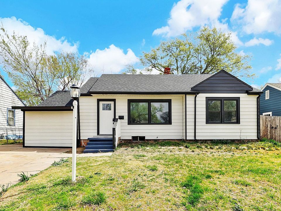 Beautifully remodeled home in east Wichita featuring 4 bedrooms and 2 full bathrooms both with tiled bathtub/shower combination. The home’s interior is light & bright with modern finishes throughout including luxury vinyl plank flooring, new ceiling fans, new light fixtures and fresh paint. The kitchen is all new with new cabinets, stainless steel appliances (oven/range, dishwasher, microwave), granite countertops, tile backsplash, and new fixtures. In addition to one full bathroom, the basement also has a laundry area, family room and bonus room/non-conforming bedroom. This home would be perfect for those who enjoy spending time outdoors. The backyard is fenced with a covered patio and shed and the neighborhood has fantastic outdoor amenities. It is just a short walk to Edgemoor Park which has recreation for everyone – tennis, pickleball, basketball, splash pad, skate park, playground, baseball - the list goes on and on! Home also features vinyl windows and a new water heater. Basement walls have been reinforced with I-beams. Listing agent related to seller.