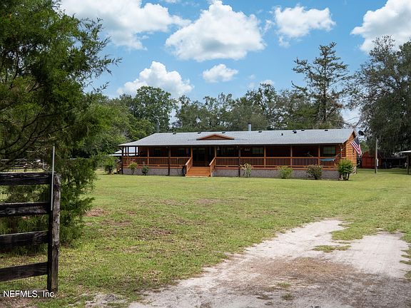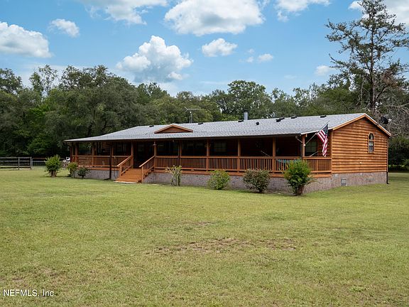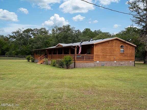 Are you ready for some peace and quiet. You have got to see this property. A beautiful 5 acres with a 24x34barn, 36x36Pole barn and a 31x20shed. Fully fenced and cross fenced with 2 Pastures. Ready for your farm animals. The triple wide manufactured home that looks like a log cabin is a 4 bedroom 3 full bath house with 2295 sq. st. Front porch the entire length of the trailer ready for your porch swing. Huge kitchen with tons of cabinets. Tile floors throughout. Huge master bedroom with attached office/nursery. Check out the double sided wood burning double fireplace. Updated kitchen. Roof is 2021. AC is 2021. New drainfield in 2022.They just ran fibreoptic cable for high speed internet. You have to see it to beleive it. This will not be here long. Come see it today.