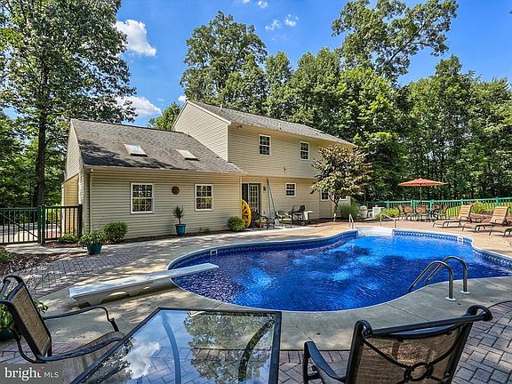 4 bedroom 2.5 bath brick front colonial with a quiet country setting but close to all amenities and convenient to Maryland. Enjoy the outdoor living with a 22X36 In-ground heated pool. Fox Lagoon model with a New liner, diving board, brick patio surround and all equipment. Beautiful private setting. PVC fencing and 2 sheds. Central vac, House security system and alarm for driveway. The 1st floor offers living room with wood burning fireplace, brick hearth and mantel. Dining room with angled windows, an office, family room with cathedral ceilings and gas fireplace. The kitchen is complete with island, desk space and table area. Mudroom leads to the double car garage. 2 options for laundry ' 1st floor Or 2nd floor. 2 staircases lead to the upstairs. Master suite with double vanity and updated fixtures, jetted tub, shower with glass doors, and skylight. Solid wood door throughout. Lower level den with new carpet, bar, bookcase, and extra recessed lighting. Large storage room. Radon system, New well pump and septic pump. Double hung/Double tilt windows. Call today to see this quality home!