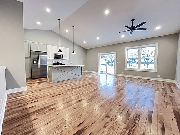 GORGEOUS BRAND-NEW HIGH-END CONSTRUCTION, JUST COMPLETED. NO ASSESSMENTS, NO HOA DUES! RANCH 1/2 DUPLEX, LUXURY HIGH-END QUAILTY MATERIALS AND CRAFTSMANSHIP. 2 BEDROOMS, 2 FULL BATHROOMS. HIGH VAULTED CEILINGS. GORGEOUS HARDWOOD FLOORING THROUGHOUT. OPEN-CONCEPT GORGEOUS KITCHEN OVERLOOKING LARGE LIVING ROOM & DINING AREA, HIGH END TALL SOFT CLOSE SHAKER CABINETS AND DRAWERS, QUARTZ COUNTERTOPS, WIDE SPACIOUS QUARTZ BREAKFAST BAR/ISLAND, BEAUTIFUL TILE BACKSPLASH, STAINLESS-STEEL APPLIANCES, REFRIGERATOR, STOVE, BUILT IN MICROWAVE, DISHWASHER, DISPOSAL, PENDANT LIGHTS. SLIDING GLASS DOORS LEAD OUT TO CONCRETE PATIO IN THE BACKYARD. MASTER BEDROOM SUITE WITH ITS OWN PRIVATE FULL BATHROOM THAT HAS BEAUTIFUL STONE TILE FLOORING, DOUBLE SINKS, WALK IN CLOSET. CONVENIENT MAIN LEVEL LAUNDRY ROOM WITH BEAUTIFUL CERAMIC TILED FLOORING. MOST OF THE LIGHT SWITCHES HAVE DIMMER CONTROLS ALSO. SPACIOUS FULL BASEMENT WITH FULL BATHROOM ROUGH-IN. LARGE EXTRA DEEP 2 CAR ATTACHED GARAGE FULLY DRYWALLED AND PAINTED WALLS AND CEILINGS. HIGH EFFECIENCY FURNACE WITH CENTRAL HUMIDIFIER. CENTRAL AIR CONDITIONING. CLOSE TO DOWNTOWN MARENGO, SHOPPING, RESTAURANTS, ETC.