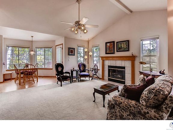 Easy living all on one level! This lovely ranch style home has an open concept floor plan. The kitchen with all appliances included has a light filled eat in area perfect for every day meals. Large living room with fireplace to cozy up to flows into dining area. Split floor plan with 2 large bedrooms and 2 baths. Master bedroom has full master bath and large walk in closet. Main floor laundry with washer and dryer included. Full unfinished basement gives you the option to add more bedrooms and additional living space. Enjoy sitting on the patio in this quiet location with a green belt that borders the back of the home. All this is ready for you to call home!