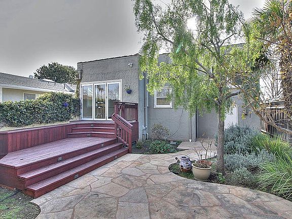 A Classic Spanish/Mediterranean staged home w/great curb appeal downtown. Previous remodeled spacious eat in kitchen w/cabinets, tile counters and floors. Folding sliding doors from kitchen to newly stained deck. Enjoy a glass of wine & relax in rectangular in ground spa and waterfall with previous professional landscaping and flagstone patio. Previous updated bathroom, Spacious Painted bedrooms with refinished hardwood floors, hardwood floors in Living room and separate dining room area, wood burning fireplace, long private/gated driveway, lots of on street parking. Home is great for INLAW quarters, lots of potential and detached garage sold in “as-is” condition.
