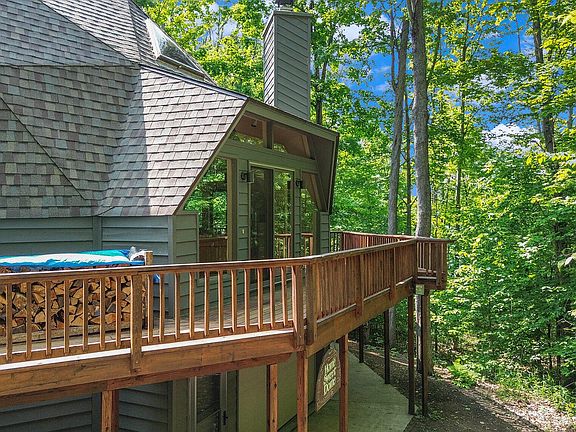 Experience a rare opportunity to own an architectural wonder nestled on over 12 acres of pristine natural beauty. This meticulously crafted geodesic dome is one of only 24 private parcels surrounding Silver Lake, a stunning 88-acre spring fed, crystal clear lake teeming with pan fish, largemouth bass and pike. Once the home of a Wilderness Boy Scout Camp, this property is steeped in natural charm and history. Enjoy 250' of private lake frontage and exclusive access to 900 acres of surrounding common area providing unmatched privacy, seclusion and connection to nature, all within a gated community. The home features an open, airy layout filled with natural light thanks to Andersen windows, doorwalls and dramatic skylights crowning the dome's apex. With 4 spacious bedrooms, 4 bathrooms, the primary suite includes a luxurious Kohler Habitat system with sauna. The custom kitchen is a chef's dream with GE Monogram appliances, commercial grade griddle, instant hot water and a pantry. Immaculate hardwood flooring complemented by a cozy wood burning fireplace and supported by a whole-house generator. Expansive deck perfect for entertaining, relaxing or enjoying the tranquil sounds of loons and native birds. Electric pontoon, Hobie Cat and 2 row boats included for full enjoyment of the lake lifestyle. This one-of-a-kind retreat blends sustainable design, modern luxury and natural splendor making it the ultimate lakefront sanctuary.