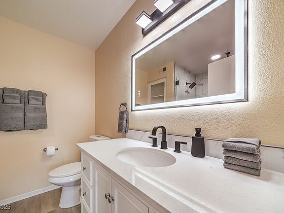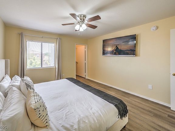 Welcome to this beautifully updated second-floor 3-bedroom, 2-bath residence located in a highly convenient Henderson neighborhood just minutes from major shopping, dining, hospital facilities, and easy freeway access. This home features a spacious primary suite with a king bed and private full bath, plus two additional bedrooms one with a queen bed and one with a full bed served by a hallway bathroom. The open-concept living and dining area provides excellent natural light and comfortable flow, and the fully equipped kitchen offers generous counter space and modern appliances. Additional conveniences include an in-unit washer and dryer, high-speed WiFi, free on-site parking, and a keypad entry system for secure access. The community also offers a seasonal swimming pool. With no upstairs neighbors, this unit provides added privacy and quiet. This property is suitable for long-term or mid-term residency and is available fully furnished.