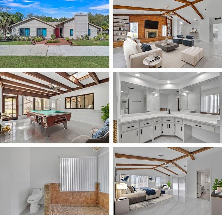 One or more photo(s) has been virtually staged. ****PRICE ADJUSTMENT ***RENOWED SHADOW OAKS subdivision of only 23 custom homes with rare 1 + acre lots,corner of Fortune Road and Shakerag Rd. Beautiful custom 3 bedrooms, 3 bathrooms, split floor plan, featuring huge Master Bedroom with new vertical blinds, new ceiling fan, vaulted ceilings and large wall mirror and "his" walk-in closet with built-in chest. The Master bedroom sliding doors open up to a deck. Fall in love with the unique "hers" and "his" Master bathroom, sunken shower/tub on "her" side, 3 side beveled edge mirrors perfect to apply makeup. "Her" walk-in closet features shelves that are positioned at different heights to sort clothing. A shared shower can be accessed from his/her side. Both sides have spacious vanities with quartz countertops, tiled floors and two separate toilets for privacy. New Porcelain floor throughout the house. The kitchen is perfect for a new family chef. The spacious kitchen island is perfect for a breakfast on the run or snack area. Stylish gray cabinets with Quartz counter tops, modern faucet and new stainless steel LG appliances. Spacious pantry and china cabinet in the hallway facing the kitchen. The kitchen conveniently opens up to the dining area and pass-thru windows to the Florida room. These features make serving hot meals easier for the happy Chef. The Florida room leads you to the inground (456 sq ft -gunite/concrete), screened in pool and spa-pool cleaner included, the exterior is surrounded by a concrete sidewalk. Enjoy your summer days in your own pool paradise. The huge fenced yard is perfect for parties, enjoyment of the Florida weather, a great spot for pets ,family and friends fun .Extra features include an attached 2 car garage with a laundry area, garage door opener and newly painted epoxy floor as well as a detached garage/workshop at the end of the driveway; the detached building is open to endless possibilities. Sunken great room features a wood burning fireplace and 2 imposing book shelves - one on each side. The home faces east and is located in a small 23 home subdivision with publicly maintained lighting and fire hydrants. The home has a concrete circular driveway, large front and backyard, appealing landscaping with numerous plants and bushes. Red paver leads to the stone to the entrance of the home.In addition the roof was replaced on 4/5/2023, freshly painted interior 2023, HVAC, water heater and exterior paint about 2 years ago.The guest bathroom has a new toilet, quartz vanity countertops, attractive mirror and light fixture. Country living with easy access to schools, shopping, restaurants, main roads, highways and Orlando attractions. Walk to Valecia College.