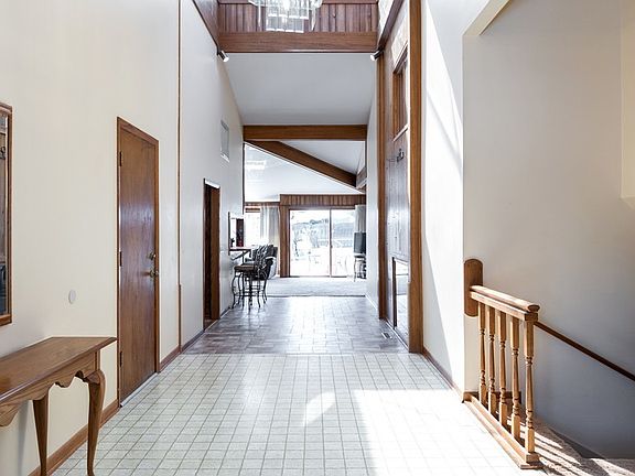 Welcome home! This semi custom 6 bedroom house is unlike any other in the subdivision! From the moment you step foot inside you will be amazed. The grand foyer features cathedral height ceilings and gives way to an incredible skylight. Exposed wooden beams throughout the entire main floor highlight the beauty of the cathedral ceilings. The large eat in kitchen features a double oven, electric stove, KitchenAID stainless steel appliances, breakfast bar, and a WALK IN PANTRY. The kitchen overlooks the open concept living room which flows nicely into the naturally bright dining room. On the second level you will find a very large Master bedroom with attached sitting room, walk in closet and an updated sit in shower. Further down the hall sit 3 additional bedrooms all of very generous size. The hall bathroom also connects to one of the bedrooms, perfect for visitors. The last 2 bedrooms can be found in the English Basement along with the Large sized family room which features a wood burning fireplace and built in cabinetry with dry bar. The upgraded stylish basement bathroom features an extra deep tub with whirlpool jets. And the cherry on top to this beautiful listing is the gorgeous backyard! Sit on the extended patio and enjoy the view of the kidney shaped in- ground pool with diving board. Or sit in the wooden trellis and take in the grandness of the large fenced yard. The nice sized pool house holds the pool pump and ample metal shelving for storage. Close to Route 14 and shopping. RUN fast this one won't last long!