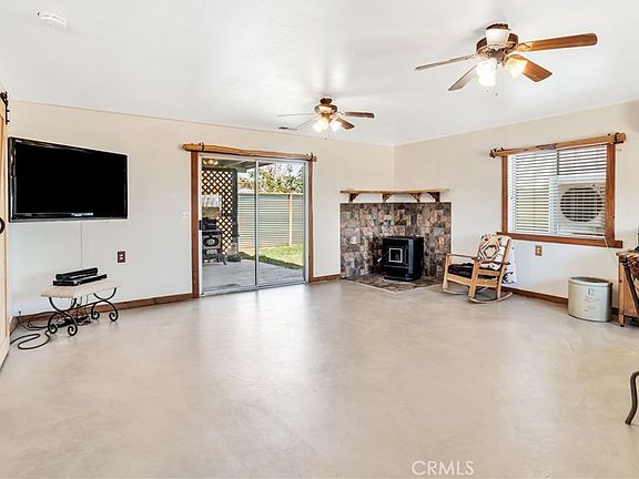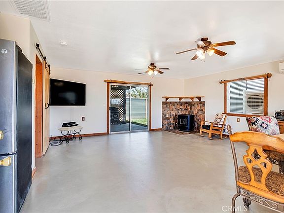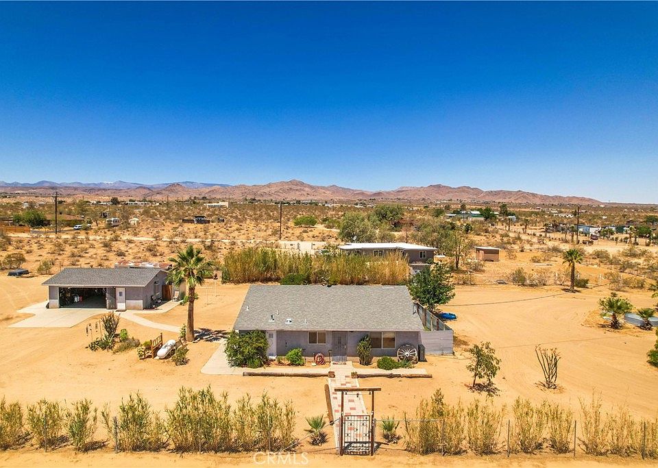 This charming 1 bedroom, 1 bath home is nestled on 2.5 peaceful acres in lovely Landers! Easily accessible on the corner of paved Reche Road and Single Tree, as you arrive you'll be blown away by the stunning mountain and desert views that surround you from all sides here. Step inside the home to find yourself in a large and inviting living room with ceiling fans, large windows and a sliding glass door that leads to a large covered back patio that is enclosed with lattice for extra shade. The kitchen enjoys plenty of nice wooden cabinets, a gas stove, dishwasher, and a big window over the sink to take in the views. The bedroom is comfortably sized with a large window to let in plenty of light and more views, while the remodeled bathroom has a tiled tub/shower combo for all the necessities. Step outside to explore the extensive outdoor living space. In addition to the inviting enclosed porch, there is also a cowboy pool and a fire pit, perfect for entertaining! You'll be impressed by the huge 730 sq ft detached garage, and appreciate that it has power and is fully insulated. There is also a cool outdoor shower with its own water heater on the outside of the garage as well. There is a concrete slab with water connected for an RV. Pleasing palm trees dot the property, while 360 degrees surround you. Despite all this serenity, the home is just minutes from the Landers Post Office, Brew Company, world famous La Copine Restaurant and the Integratron – wow! Book a showing now to claim this fantastic find for your own.
