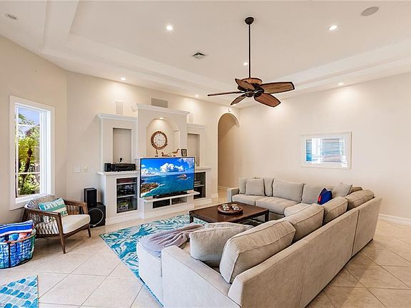 Special Price for Nov 2025 - Jan 15th 2026, or April 2026 and beyond One-of-a-kind custom-built 4 bedroom pool home on corner lot at the end of canal with BOAT DOCKING availability. Double door entry and large foyer opens to beautiful lanai-covered pool and long photogenic waterway with dining area, grill, loungers, and all you need to enjoy the outdoors. The eleven-foot tray ceilings and seven-foot doors add to the elegance and spaciousness throughout this home. Newly updated kitchen with island, butler's pantry, and ample cabinetry- a chef's delight! If you must work there is an office space equipped with printer/monitor/and key board. Private primary bedroom features an en-suite bath and water views. Two additional bedrooms with queen beds share an updated jack and jill bath with pool access. 4th bedroom at the front of the home features a twin with trundle. This open floorplan is perfect for entertaining, dining and relaxing with the whole family. Located close to beaches, shopping and restaurants. Pet allowed with approval.
