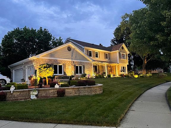 Absolutely stunning home with jaw-dropping curb appeal in highly sought after Highland Glen! 5 year transferable home warranty! Quality built home on private lushly landscaped cul-de-sac lot complete with 3-car attached sideload garage with new doors, spacious deck with hot tub and pergola, brick paver patio, sprinkler system, convenient storage shed and an above ground pool with new liner and filtration. Custom landscape lighting. New windows, custom front door, new roof, gutters with gutter guards, new driveway and pavers, plus finished garage. Every day is a vacation here! Step inside to find fresh interior paint and new carpet. Inviting living room and formal dining room with hardwood floor. Generous family room with floor-to-ceiling brick fireplace with gas logs. Updated gourmet kitchen complete with breakfast bar, eat-in area, granite countertops and stainless steel appliances. 1st floor laundry and powder room. Upstairs, bedroom sizes are generous and include the master suite with cathedral ceiling, hardwood floor, His & Her walk-in closets and deluxe updated private bath with double bowl vanity, whirlpool tub and separate shower with multiple sprayers. Providing even more living space is the unbelievable full finished basement complete with media & rec room, game room, exercise area and full bar. New energy efficient water heater, furnace and air conditioner, plus battery backup sump pump. Quiet location yet close to shopping and dining. Just minutes to I-90, Sherman hospital and more! Fantastic neighborhood and location! MUST SEE!!