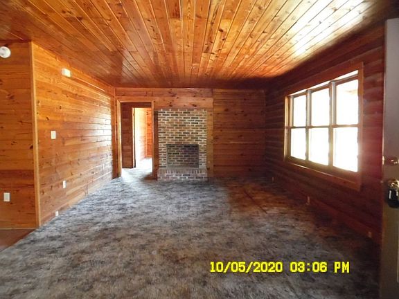 Rustic log home with front and rear covered porches! Great room has a fireplace and some built-in shelving. Split bedroom layout -one bedroom closet is located just outside of the bedroom door. Owner's suite has a walk-in closet as well as the laundry room. To be sold as-is; no SDS; addenda to follow. Heat appears to be propane, but there is no tank present. Not all financing types will be available for this home.