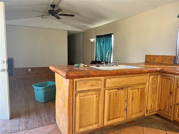 Quaint single wide, manufactured home on 1 acre. 644 sq ft. 2 bedroom, 1 bathroom. Living room with electric fireplace. Kitchen/dining area combo. Solid wood kitchen cabinets & custom counter tops with breakfast bar. Updated flooring & paint (interior/exterior). Laminate and tile flooring. Tile shower/tub combo in the bathroom. Fully fenced property. 40' cargo container (conex box) is included. 30 amp RV hookup. Gravel driveway from the street leading around back to the cargo container & well.