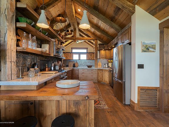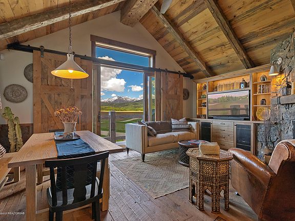 Brilliantly designed and beautifully crafted, this Alta, WY property is a unique offering for the discerning buyer. The main structure consists of a charming 881 sq ft, one bedroom apartment, accessed by stairs or an elevator, over a 1405 Sq ft garage with drive through motor home parking and an automobile bay. The property also includes a large 3-bay toy barn. A generous building envelope allows for a home and barn to be added. Reclaimed pumpkin pine wood flooring, marble and Cambria Quartz countertops, hand forged metal work, DSC professional gas range, and Merrill Woodworking custom cabinetry are just some of the finishes that set this property apart. Enjoy beautiful protected views of the Teton Range by the fire and wake up to expansive views of the Bighole Range.
