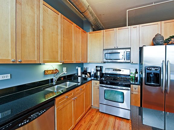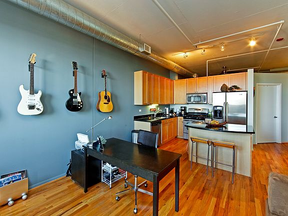 HOT WEST LOOP SPACIOUS & BRIGHT WEST FACING CONCRETE 1BR LOFT WITH SOARING CEILINGS AND OPEN LAYOUT! GORGEOUS SUNSET VIEWS OFF YOUR LARGE BALCONY!! KITCHEN HAS 42" SHAKER STYLE CABS, 1 1/4 GRANITE, MAYTAG SS APPLIANCES, HARDWOOD FLOORING, & GAS FIREPLACE. LARGE BATH HAS SOAKING TUB AND LIGHT STONE TILE. LOTS OF CLOSETS AND IN-UNIT WASHER/DRYER + ADDITIONAL STORAGE CAGE. BUILDING HAS 24HR DOORMAN, BUSINESS CENTER, EXERCISE ROOM! 1 GARAGE SPACE +$200. Dog Friendly Building