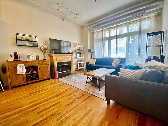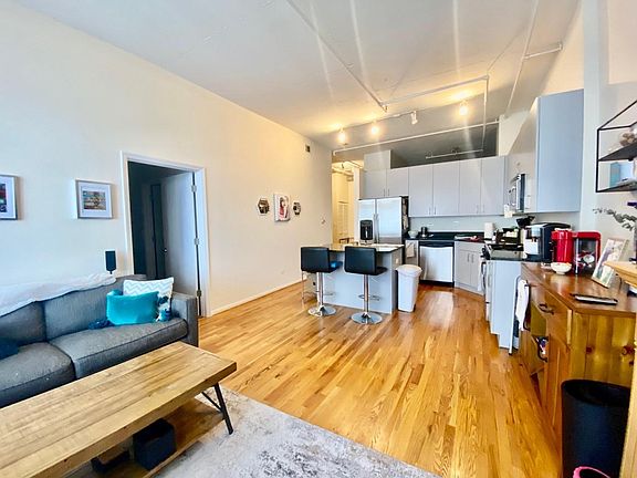 Two bedroom condo in one of the best locations within the West Loop. Updated kitchen with grey cabinets, stainless steel appliances and granite counter tops. Hardwood floors thru-out the entire apartment. Large main suite with good sized bedroom, large walk in closet and large bathroom with double vanity and separate tub and shower. Very high 12 ft concrete ceilings. Good sized balcony with western exposure. Split floor plan but the second bedroom does have lofted walls. Indoor heated parking INCLUDED. Building amenities includes workout room and business center. Building has a $300 move in and out fee and a $250 deposit Renter responsible for gas and electric. Garage parking included. Basic direct TV is included