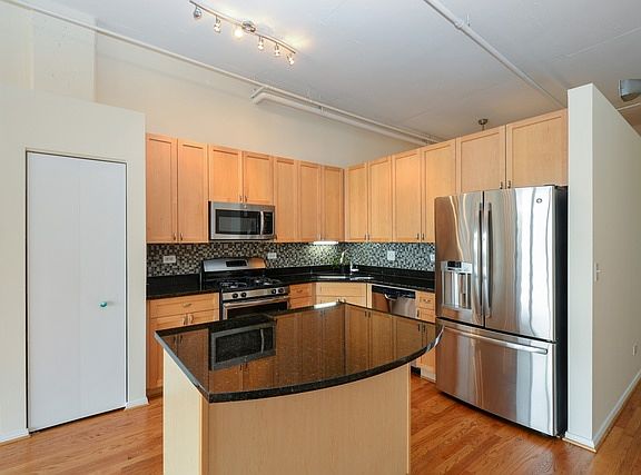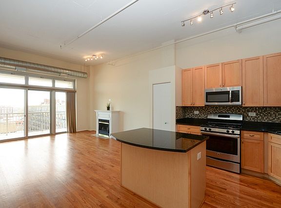 Sunny top floor penthouse with south facing balcony overlooking downtown and Mary Bartelme Park. Extra high ceilings lead to an open living room with fireplace and kitchen. Kitchen is equipped with stainless steel appliances, breakfast island, and granite counters. Hardwood flooring throughout living and kitchen area. Master bedroom is fully enclosed with en suite bath, including tub, separate shower, double vanity and large walk in closet. In-unit washer and dryer. Building offers fitness, Business Center, convenience store and on-site management. 2 car tandem parking is included in the sale price. Best location in the West Loop, just steps away from some of the city's best restaurants, as well as Whole Foods, Mariano's, and H Mart....