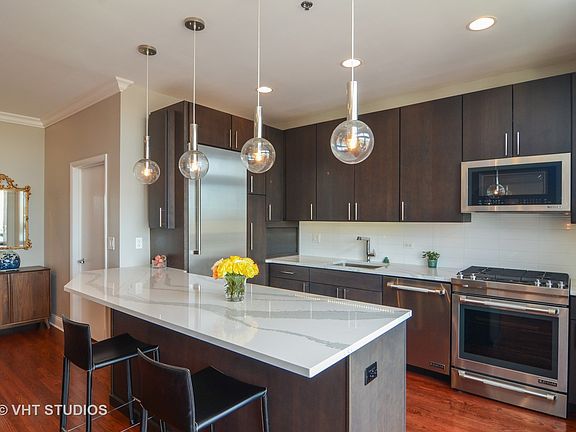STUNNING updates & unobstructed views in this unique TOP FLOOR 3 bed (all FULLY enclosed)/ 2 full baths in hot West Loop location. FULLY RENOVATED chef's kitchen in 2016 offers Cambria Quartzite counter tops/island, custom SOLID CHERRY cabs, SS Jenn Air Professional convection oven/ gas range, Thermador built-in fridge. Newly refinished HDWD floors, designer lighting fixtures & custom glass panel closet doors. 2017 REMODELED 2nd bath offers Quartzite countertop, Italian Porcelain floors/shower surround, Ralph Lauren lighting. NEWER Front loading W/D in unit. TWO BALCONIES! Oversized TANDEM GARAGE PKNG for TWO CARS - Extra $35k. Dog lovers? The ever-popular Mary Bartleme Park is across the street. Walk to Whole Foods, Mariano's & countless dining & entertainment options on Randolph & Greek Town. Walk to LOOP, GREEN/PINK LINES. Skinner School Dist. Easy access to 90/94. Building offers doorman, on-site Mgr, fitness room/business center, Press Box dry clean service. Xtra storage