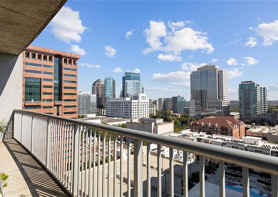 Luxe Condo with East facing veiws from the 18th floor overlook the midtown skyline! Beautiful light filled living areas. Largest 1 bedroom Floorplan offers living/dining areas, custom kitchen with stainless steel appliances, custom cabinetry and granite c-tops, built-in desk area with custom mirrored wall. Large bedroom w/ 2 large double closets! Tiled bath with tub/shower & storage areas. Washer/dryer and all appliances included! Custom designer light fixtures! Expansive Balcony with access from LR and BR, offers ample space for outdoor entertaining and relaxation! Breathtaking views! Recently Renovated common areas, lobby, clubroom, fitness center! Resort style swimming pool and lush landscape Sky Park! Gas Grills and Firepit! Midtown MARTA station, GA Tech Trolly Shopping, Dining and PUBLIX are an elevator ride away!24 hour Concierge services, gated and controlled access building. This unit also provides a huge Storage room (11x5) that adds Value$$$! Strong HOA and management.