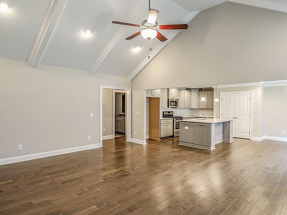The Overton is a 1 ½ story open floorplan with ample possibilities. This four bedroom, two and a half bath plan with bonus room begins with a refined foyer entry way that opens into a roomy living area with a vaulted ceiling. Next experience the open kitchen with large center island and adjoining dining room. The kitchen offers built in appliances, granite countertops and an expanded pantry. The master quarters provides a large bedroom and walk in closet as well as a luxurious bathroom complete with a double granite vanity, garden/soaking tub, and tiled shower with glass door. The bonus room located upstairs includes a half bath and has plenty of possibilities as an entertainment area or extra bedroom. This layout truly is a must see!