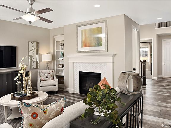 ***MODEL HOME FOR SALE!***This immaculate model home offers a spacious great room with fireplace and engineered hardwood flooring through main level living areas. A gourmet kitchen features white cabinets and quartz counter tops, stainless steel appliances including a double oven and a 66" Refrigerator. Enjoy meals at the kitchen's center island or in the formal dining room where a sliding door leads to a covered patio great for enjoying Colorado's 300 days of sunshine. Upstairs is a convenient laundry room, a versatile loft, and a lavish master suite with an expansive walk-in closet and a deluxe bath with quartz counter tops. The finished basement has a spacious rec room and a bedroom with a full bathroom perfect for a teenager or when family visits.