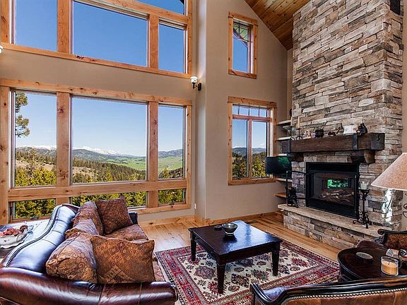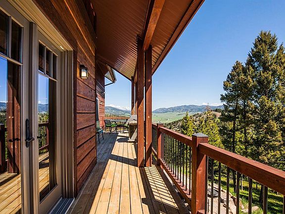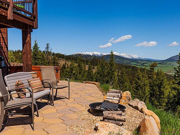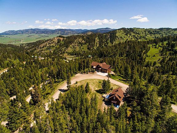 Dreamy Montana Home perched high on a mountain between Bozeman and Paradise Valley with sweeping views of the Bridger Mountains. This home has it all with hand-scraped wood siding, vaulted majestic tongue and groove ceilings, forced air, stone fireplace with remote start and a gourmet kitchen to entertain the most discerning guests. Each bathroom has tile accents with matching solid surface counters. Rejuvenate in the main floor steam shower. Relax in the hot tub while soaking in the panorama of the mountains and forest. Enormous master suite with separate office and enchanting propane gas stove. Home has year around access and is close to Bozeman for shopping and skiing at nearby Bridger Bowl and Big Sky. Situated on over 11 acres of timber with 2 creeks and abundant wildlife including deer, elk, moose and the occasional black bear. Park in the over-sized attached garage and store your toys in the custom built detached garage with room to finish the above apartment.