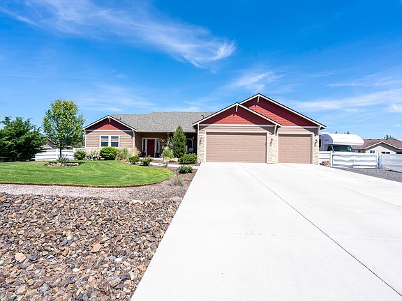 BACK ON THE MARKET! This is the one! Beautiful one level home on spacious .51 acre lot in desirable Angus Acres. Open floor plan including oversized great room with real hardwood floors. Kitchen has quartz countertops & large island. Dedicated office space with custom built-in's. Main bedroom has a wood accent wall & custom built-in cabinetry with closets & drawers. Patio door off main bedroom leads to back patio with private hot tub area. Master bath has custom tile flooring, large walk-in shower and soaking tub. Oversized triple car garage is finished with custom cabinetry and epoxy floors. Large corner lot with a backyard that is great for entertaining. One large patio with pergola & one large concrete pad that could be a sports court or RV parking. Entire backyard is fenced, including fenced-in RV parking on south side. Smith Rock & Mountain views, must see!