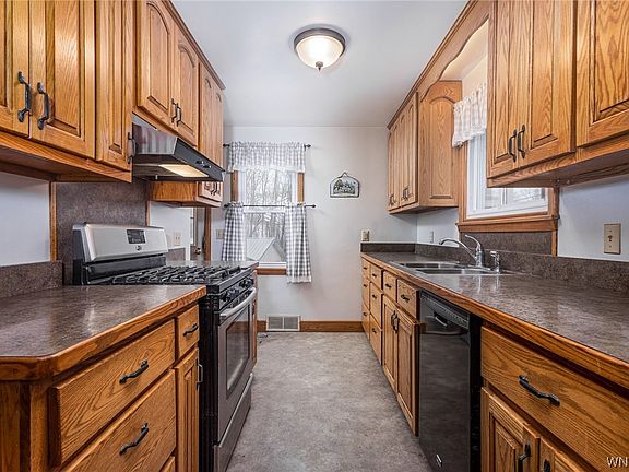 Welcome to this cute as a button 2/3 bedroom brick Ranch , on 3 acres, in Pembroke School District. You will be delighted to see the open concept in the living/dining room which offers an abundance of natural sunlight and is perfect for entertaining. The kitchen has a breakfast bar that seats 4. Kitchen also features tons of solid oak handmade cabinets, with ample counter space, and a pantry. Separate dining room. Appliances stay! Good size bedrooms, hardwood floors, two-car de-attached garage, electric dog fenced yard, back deck, and double driveway, with parking area. The full basement and full attic even offers plenty of space to add additional storage, play area, and possibilities are endless, if desired. The office can also be utilized as a third bedroom, laundry room, den or playroom. Within minutes from NYS thruway. Private backyard to enjoy plenty of wildlife and nature! Due to overwhelming interest in the property, Seller's are requesting all offers to be in by Monday April 17, 2023 at 4PM.