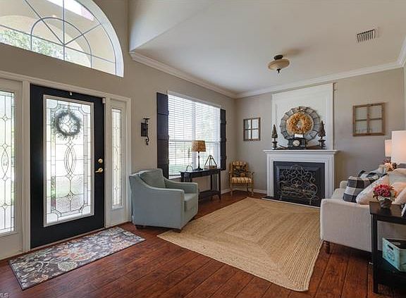 Stunning 2-story pool home in Stoneybrook! Situated on an oversized corner lot, this lakefront home is a rare find. This 3 Bedroom+Den home offers a clever floor plan that is perfect for family living, yet also allows for privacy if desired. You will love the view of the open staircase from the elegant glass front door entry, and be amazed how over 2500sq. feet of living space can feel so cozy and inviting! Commercial grade engineered hardwood flooring throughout (w/ exception to Bathrooms & Kitchen), tall custom wainscoting, fireplace w/ mantel & wood detail to ceiling, crown molding, bay window system & arched windows, pool bath, screened balcony off of Master Suite and wood railing on staircase are just a few of the Bells & Whistles this home has to offer. The Open Concept Kitchen w/ Breakfast Bar & Breakfast Nook has recently been updated and features NEW stainless steel appliances, and a new A/C unit was installed in the home in 2013. The massive screened pool lanai that offers a view of the spacious backyard and the lake, has plenty of room for a grill area and/or firepit. Stoneybrook is a family friendly gated community w/ a guard 24/7.