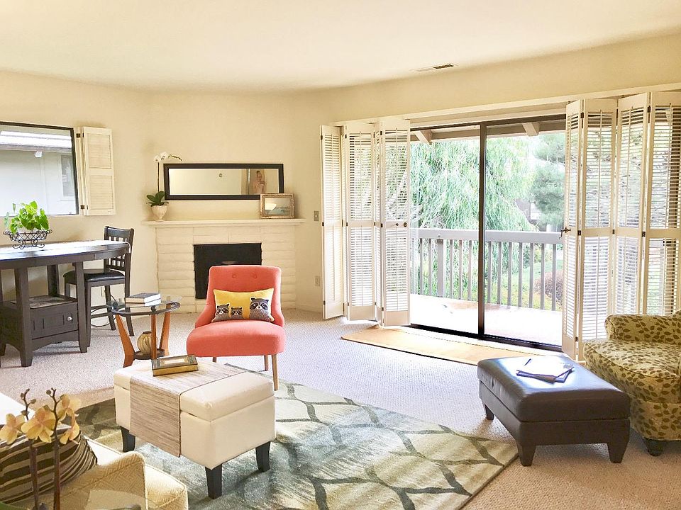 Basking in sun and the scent of flowers, this rarely available 2 bed, 2 bath condo is conveniently located just a block from shops, groceries, restaurants, and verdant trails, while affording close proximity to the village of Carmel, multiple beaches, and the schools of the Carmel school district. The Carmel school bus stop is on the nearby corner.Desirable upstairs unit, with no occupants overhead; one of the more tranquil locations free of noise from carports directly underneath; carport and large private storage unit are nearby on the garden path. Redone kitchen and baths; extensive closets; laundry facilities a block away; new roof in 2017. Wrapped by light throughout the day as the sun transits from East to SW. The spacious deck overlooking manicured grounds and hilltop views joins a gas fireplace to create an oasis whose ambiance flows from day through night. Tranquility, serenity, and convenience combine to create a sanctuary - complemented by a swimming pool and gardens graced by mature landscaping, birdsong, and blooming magnolia trees. Seller financing available.