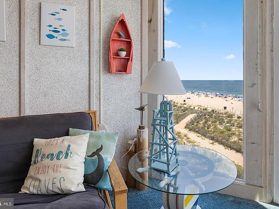 Spectacular views from this spacious direct Ocean Front end unit! Unique layout with a floor to ceiling living room window offering lots of natural light and extensive ocean and beach views from the living/dining area & kitchen! One of the largest one bedroom units available! Excellent rental unit with this pristine location. Nautical theme and has only been rented to family and friends. Desirable building with excellent management. Enjoy all Ocean City has to offer! If you’ve been waiting for the right condo at the beach, this is worth taking a look at before it’s gone! Great investment opportunity or for your family to enjoy year round!