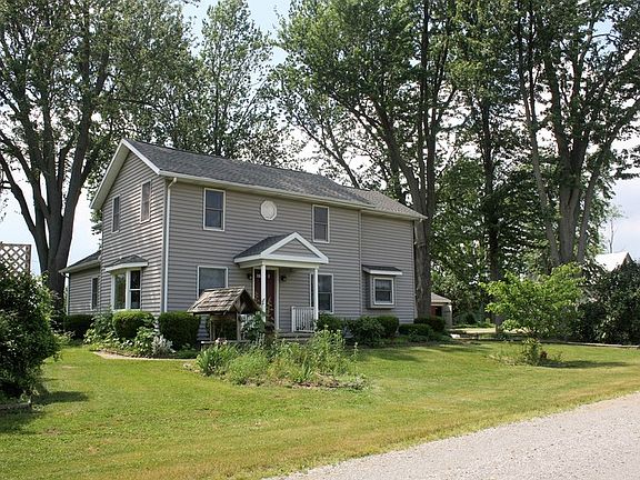 This two-story country home is secluded by trees, surrounded by farm fields, and minutes away from shopping and restaurants. Large Andersen double-pane windows provide a relaxing view of the recently painted bank barn. Extra-large family room with vaulted ceiling. Spacious kitchen with Grabill cabinetry. Master bedroom on main floor. Two full baths down and a half bath up. Natural wood doors, door frames, and base boards. Well-established flower beds encompass the exterior.House and workshop roofs replaced 4 years agoBank barn painted 2 years agoAbundant storage: 17 closets!Built-in convection microwave and oven (new Jan 2015)Replica cast-iron stoveOutbuilding can serve as work shop, home office, kids hangout...Built-in Holland gas grill/smokerBuilt-in floor-to ceiling bookshelves in Living RoomCentral heat and A/C, Aprilaire, HEPA filterNIPSCO natural gasWell water, Kinetico demand softenerSeptic1 year HMS home warranty included at closingRed Barn (L-shape): 58x36 + 32x42 (3432 sqft) main floor, full lower floorWhite Barn: 36x28 (1008 sqft) main floor, partial upper floorOutbuilding: 22x22 (484 sqft)