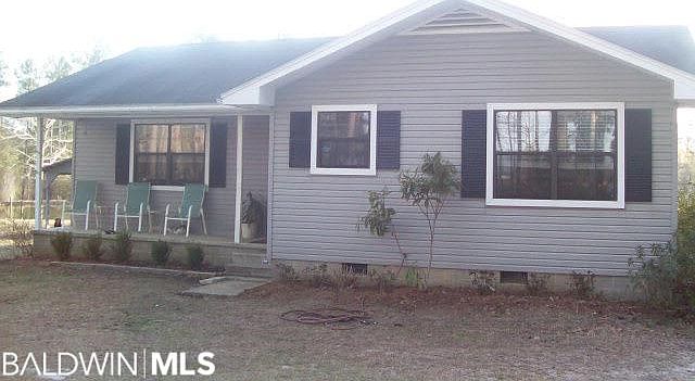 Close to I-65 and Bay Minette(D,Olive St.). Beautiful front yard with dogwoods and azaleas. Fruit trees and blueberry bushes. Stocked pond has a well for filling, home is connected to a well. 36' x 24' garage (w/elec., water), 28' x 24' workshop w/10' lean to, equip. shed and another slab. Enclosed back porch(20' x 10'). Island in kitchen. County zoned. Adjacent 22 ac., $88,000, MLS #173663.