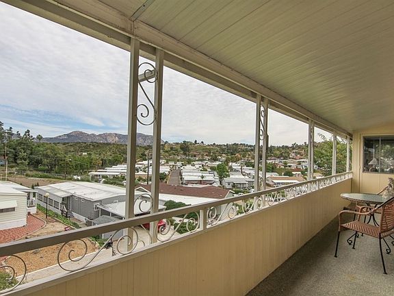 Priced to sell! Will go Fast! Do not miss this opportunity to live in the desired Lake Jennings Park Estates 55+up gated community. Enjoy quiet sunsets with gorgeous views of the lake and mountains from your covered patio and enclosed large bonus room. Amenities include community pool, spa, gym and clubhouse. This very spacious open concept 2 bedroom 2 bath is ready for some TLC. Home also includes large bonus room addition with beautiful views! 2 additional storage sheds with electricity.