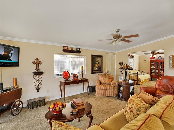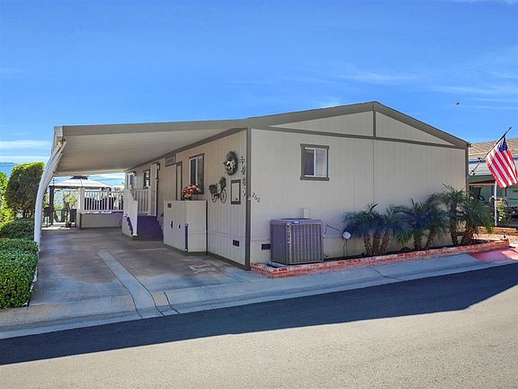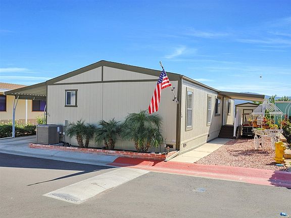 Accepting offers with a 72 hour clause in effect. Family room can be converted to an optional 3rd bedroom. Inside, enjoy crown molding, newer AC, 4 ceiling fans, blinds, wide baseboards, woodgrain laminate flooring, granite, newer paint and more. Outside, enjoy VIEWS, newer paint, new risers at both entrances, sec screens, hardscape, landscape, backyard oasis thats low maintenance, fencing, a beautiful metal gazebo, canvas window awnings, 2 space covered carport, shade structures,++ You will fall in love and wont be disappointed! Your search for a beautifully upgraded, remodeled and maintained home in this price range is over! Enjoy the low HOA fees, NO SPACE FEES, amazing amenities, access to gorgeous walking trails & community activities. Do you consider your dog one of your children? This place is perfect! This is a very pet friendly community and your home will overlook the dog park! Did we mention no space fees? You own the lot in condo style. This community has a lot of heart and soul- lots of great community events so you will be able to find as much social activity as you want. Lake Jennings is a quick hop to the freeway and all San Diego destinations. You have grocery stores, dining, Walmart, Costco, theaters, entertainment and so much more within close distance! Ask us how we can help you get low conventional financing on this home!