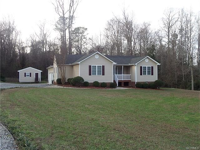 It is a pleasure to offer this custom built beauty on over 2 acres with a pond! Lovingly cared for and looks new! New Flooring and Paint. Beautiful Entry Door! Great Rm with Surround Sound, Shelving and Mount for TV, Kitchen with Porcelain White Sink, Range, Refrigerator, Pantry and Crown Molding, Vaulted Master is huge with ceiling fan, and walk In closet, and Master Bath has double Sinks and a double size linen closet. Security System remains. Plantation Blinds remain. Owner said FIOS! 3 Car attached garage with insulation and sheetrock, storage cabinets, pedestrian door, auto garage door on double door garage entry, refrigerator in garage stays. Detached storage building with window. Gutters & Downspouts. Flood Lights. You will love the near ground level deck with hammock beside it, you can watch the water lilies open in the pond while you sit enjoying the serene views of the pond while you enjoy your morning cup of coffee. Location is so convenient, near 288, 95 and Chippenham, make your commute easier and save your gas. Truly a delightful property. Endless possibilities when you have a property on land where you can spread out in the years to come. Come make this your home!