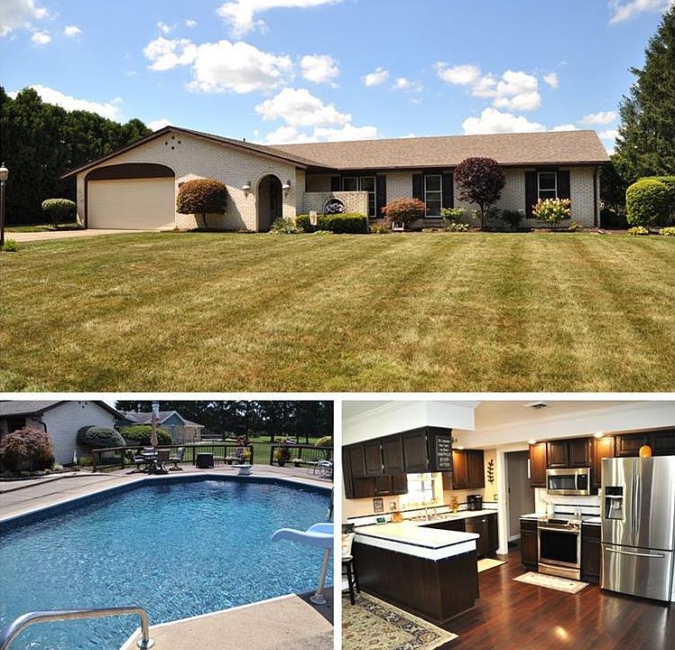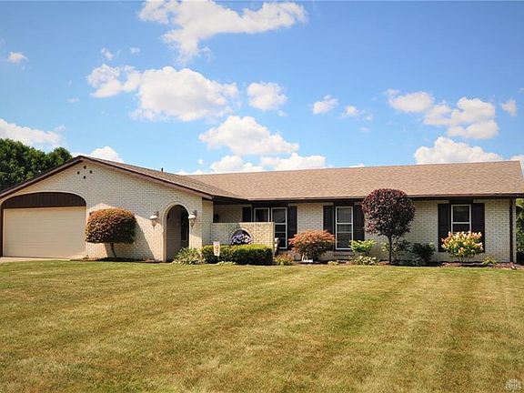 Stately Brick Ranch with gorgeous inground swimming pool, which is surrounded by a large patio, sets on a meticulously landscaped lot. This 4 bedroom, 2 full bath home has a Primary Suite with a fireplace and custom built vanity. The private bath has a 6 person dry sauna, walk-in-closet, and walk-in-shower. The large kitchen has updated appliances. There is a living room, large family room with fireplace, a rec space with large built in shelves, and oversized enclosed porch leading to the swimming pool. New roof and gutters in 2015. Dual heating systems: electric baseboard and gas forced heat! 2.5 car oversized garage, quality shed. Fenced yard with no rear neighbor. This Piqua home is in a quiet and well-maintained neighborhood with easy access to I-75. If you're looking for a home with relaxed elegance, peaceful indoor to outdoor flexible spaces, and 1-level living You've found it! This one is waiting for YOU!!!