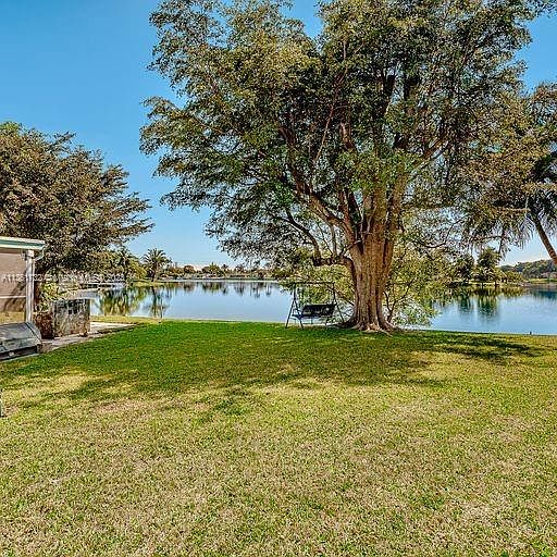 This spacious home has a stunning lake view with a sandy beach area in a quiet neighborhood and on a cul-de-sac. Don't miss out on this 3 bedroom, 2 bath home with a two-car garage. With a large oversized fenced in shaded back yard, you can enjoy beautiful sunrises and sunsets both outside and from inside the Florida room. Other great features include an open kitchen, plenty of closet and storage space, an installed fiber optic line, a lake fed sprinkler system on a timer, and a wired alarm system. Three kayaks, a rowboat, and a flat bottom boat could be included. The property is in a great location close to Brian Piccolo Park, supermarkets, restaurants, schools, and a hospital. Opportunity to renovate with your special touch.