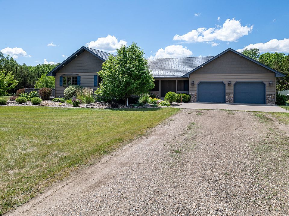 Welcome home to this beautiful private country setting in North Bismarck on 1.9 acres. Mature trees surround the property with immaculate landscaping and and quality finishes. The main floor is spacious with tall ceilings and has a kitchen, dining room, living room great for entertaining. There is walkout access to the maintenance free deck and concrete patio off the living room, dining room and master bedroom overlooking the large yard. The lower level is complete with a large family room, laundry room, bedroom, and large storage room with extra closets. There is access to the oversized garage from the lower level as well. This home has steel siding, metal roof, and is in immaculate condition. Call your realtor today for a showing!