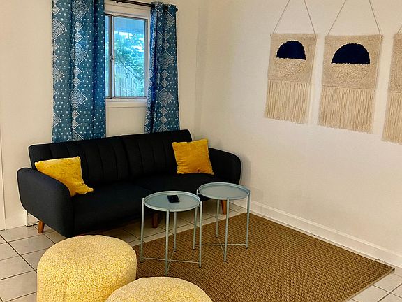 Enjoy living in this newly repainted, fixed up, and newly furnished, large apartment. There is a large family room, large kitchen, and big bedroom with 2 big closets. This apartment also boasts its own private outdoor space, and private driveway large enough to fit 2 cars. Fully furnished. No animals. Renter responsible for all utilities. Last month due at signing. No pets. No smoking.