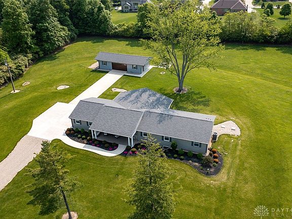 COMPLETELY REMODELED!! Taken down to the studs in 2019, this Washington Township ranch is nearly new! Complete with a finished basement and attached garage + oversized detached garage, all on a nearly FIVE ACRE lot! 2019 updates include all new electrical, plumbing, roof, HVAC system, flooring, kitchen, bathrooms , water heater & softener, and MORE. Basement was finished in 2022. Desirable open concept floor plan featured throughout the main living area. Oversized front living room with tons of natural light. The adjacent eat in kitchen offers everything you could ask for - soaring vaulted ceilings, stainless steel appliances, two ovens, large island, walk in pantry, and walkout access to the back patio. Main floor primary bedroom with attached full bath complete with a two sink vanity, custom tile shower, and large walk in closet. Two additional first floor bedrooms and full hall bath. Large laundry room with ample cabinet storage and utility sink, plus a convenient half bath also on the main floor. Even more living space offered by the FINISHED basement! Large rec area with with a builtin bar. Fourth bedroom and third full bath. Plus ample unfinished storage space. Enjoy the stunning private views from the back patio or covered front porch. This home offers a two car attached garage plus a massive detached garage - large enough to suit any need! This one of a kind property offers the perfect balance of a central/convenient location while still offering private acreage with stunning mature landscaping. No detail was missed in the remodel of this home - MUST SEE!!