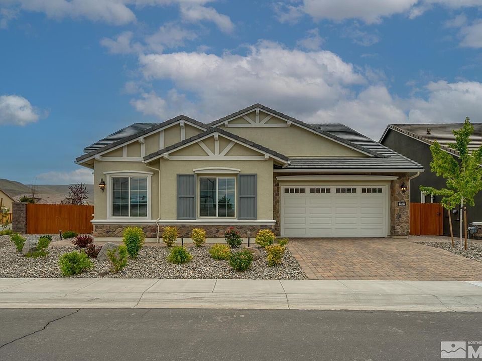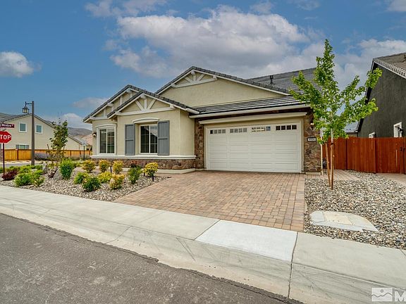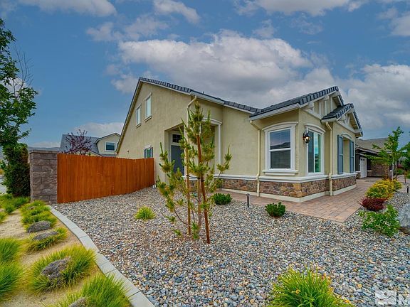 Immerse yourself in an extraordinary living experience in this luxurious Toll Brothers home, nestled among the breathtaking Sierra Nevada mountains at Bella Vista Ranch. Meticulously crafted with custom upgrades, from the exquisite Chef-style "smart" kitchen to the thoughtfully designed xeriscaping in the front and backyards. This remarkable home, available for immediate occupancy, caters to your every desire. Don't miss the chance to witness its splendor. See additional remarks for more details., The exquisite Chef-style kitchen features an extended island with custom pendant lights, two-tone color cabinets, and ample bar seating. Quartz countertops, a dual fuel range/cooktop, built-in "smart" WIFI microwave and oven, double stack cabinetry with Phillips Hue color smart lights, and a full backsplash adorned with custom accent tiles elevate the space. A large walk-in pantry adds convenience. The great room impresses with its two-story ceilings, ceiling fan, and a cozy gas fireplace adorned with accent lights and floor-to-ceiling modern-style stone with a wooden hearth. Custom shutters grace the windows, while the adjacent dining area showcases custom cabinets with Philips Hue smart lights, a quartz counter, and a wine fridge, with room for an additional full-size wine or kitchen fridge. Modern-style stair rails lead to the expansive loft area, complete with a custom ceiling fan, a bedroom, and a full double sink bathroom, perfect for various uses such as a movie theater, game room, or second family room. The master bedroom and bath on the lower level offer a spacious walk-in shower, garden tub, dual sinks, and a generous walk-in closet. All bedrooms feature upgraded carpet and pad, ceiling fans, and custom blinds. Step outside to discover a large covered patio surrounded by low-maintenance xeriscaping in the front and backyards, complemented by a custom artificial grass area, a circular paver patio, and a designated space for a future hot tub. The tandem-style 3-car garage includes a high-efficiency tankless water heater and EV Charging. This home is the epitome of upgrades and must be seen in person. Residents will enjoy convenient access to walking trails, parks, popular retail shopping, restaurants, and entertainment. Additionally, Mt Rose Ski Resort is only a short 25-minute drive away, while the world-famous Lake Tahoe is just 40 minutes away.