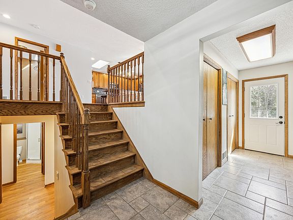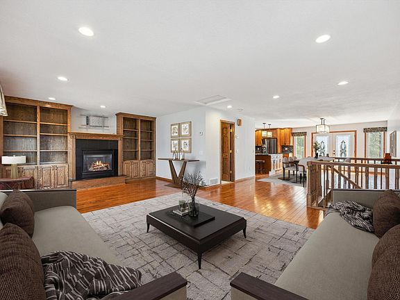 Outside, a large maintenance-free deck is perfect for entertaining, complemented by a huge backyard patio and a relaxing hot tub. A 6-foot privacy fence ensures seclusion, while two yard sheds provide ample storage. Established perennial gardens add vibrant, low-effort beauty, and an in-ground sprinkler system keeps the lawn lush. Step inside to an enlarged entryway foyer that sets a warm, inviting tone. The open-concept upper level, with hardwood oak flooring connects living, dining, and kitchen spaces, ideal for gatherings. A gas fireplace adds cozy ambiance, and built-in cabinets offer sleek storage. The upper-level bathroom is a spa-like retreat with a jetted whirlpool tub and private sauna, perfect for unwinding. The primary bedroom features a spacious walk-in closet for effortless organization. Downstairs, a lower-level office nook provides a quiet workspace, ideal for productivity. Practical upgrades include a 200-amp main electrical panel and a 50-amp garage subpanel, supporting robust power needs. The insulated and finished garage interior ensures year-round comfort, whether for parking or projects.