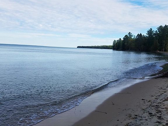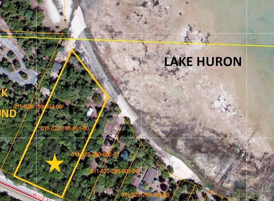 Beautifully wooded lot with approximately 200 feet of sandy beach just 2.5 miles east of Mackinaw City. This amazing property currently has a nice 2 bedroom mobile home on site along with well, septic, natural gas, two decks, shed and firepit. This property is ready and waiting for new owners to enjoy. This parcel would also be the perfect location to build several cabins or an awesome lakefront home!
