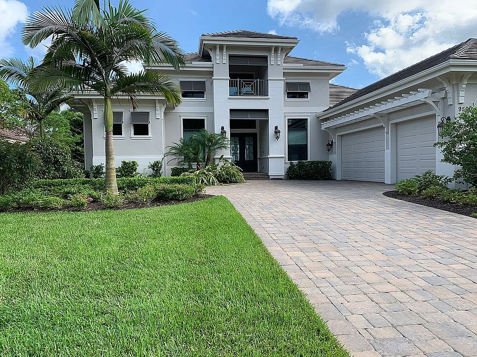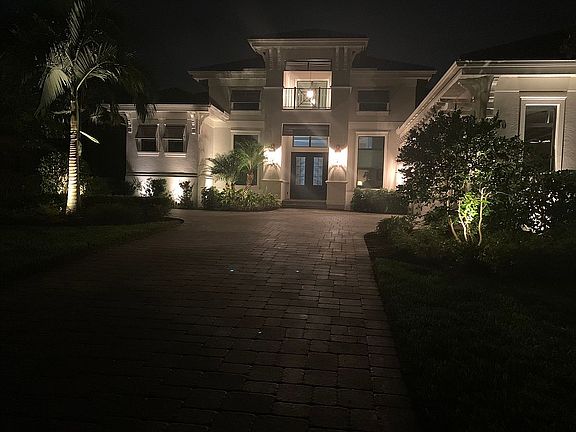 Contemporary home in golf course gated community. Home sitting on the backside of the 10th green with view of entire fairway and clubhouse. Pond with fountain sits to the left.