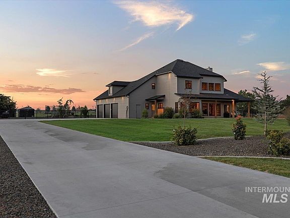 Nearly an acre in town! Stunning Gated Entrance welcomes you to Three Quarter Estates with a private cul-de-sac. This beautiful original-owner 2839 sqft home w/ mature landscape and an abundance of blue sky. Home has been updated recently with new roof, black Anderson windows, exterior doors, garage doors, rain gutters and ext paint. Functional layout with 4 bedrooms, office and bonus room. Enjoy stunning high ceilings with abounding natural light, open floor plan and stunning natural wood touches. Great room features floor to ceiling stone fireplace. Kitchen with island boasts new LG appliances, granite countertops, pantry & prep sink. Soak in the views from your dining table. Large main level master suite has fireplace, walk in closet, dual vanities, tiled shower and jetted tub! Head upstairs to find 3 bedrooms & bonus room. Includes custom window coverings throughout, water softener, water filtration and central vac. Oversized epoxied 3 car garage. Room for a RV shop and chicken coop. Convenient location!