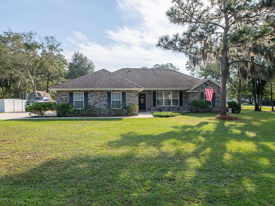 Beautiful brick home on over 1/2 acre. Spacious vinyl fenced in back yard. Double gated so you can put your boat, trailers or other toys back there. House is on a corner lot at the end of road, giving it a nice country feeling. Open concept with split bedroom plan. Attached two car garage. Public boat launch to inter-coastal 2 miles away.