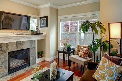 Overlooking wonderful Licton Springs Park, this 3 bed/3.5 bath home has it all. The main floor boasts one of the best townhouse floor plans available with the kitchen open to the dining room, living room, and deck as well as a powder room. Upstairs has 2 good sized bedrooms, each with its own full bathroom and great closets, plus washer/dryer. Bedroom downstairs with another bathroom and the garage. Custom back patio, great for bbqs and entertaining! New carpet, fresh paint, and beautiful!