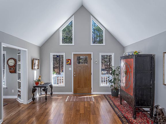 Discover the perfect harmony of comfort and nature in this stunning 4-bedroom, 4-bath home! With two first floor primary suites, this home offers versatility and ample space for everyone. The spacious living room features a soaring cathedral ceiling and skylights that bathe the home in natural light. The open-concept kitchen and dining area boast granite countertops and stainless steel appliances, making it ideal for entertaining. Step outside to enjoy two expansive decks, a fenced yard, a relaxing hot tub, and a charming garden area—all set in a serene wooded landscape. Inside, the warmth of hardwood, bamboo, and tile floors adds character throughout. Additional features include a laundry room, encapsulated crawlspace with a dehumidifier, whole-house water filtration system with reverse osmosis for drinking water, a large driveway, and a convenient backyard storage shed. Explore 5 miles of community trails and savor the tranquility of this private oasis on over an acre of land. This one's a must-see!