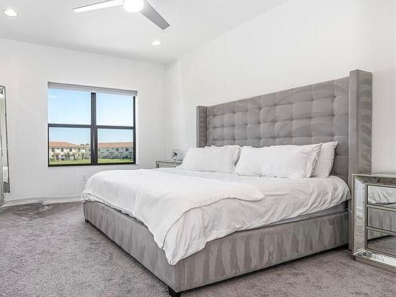 Courtesy of United Realty Group, Inc Townhouse for Rent 3 Bedrooms | 2.5 Bathrooms | 1,728 Sq Ft | Boca Raton Welcome to Enclave at Boca Dunes, a highly sought-after gated community offering modern living at its finest. This 3-bedroom, 2.5-bathroom townhouse is designed with style and functionality in mind, featuring a chef's kitchen with quartz countertops, white shaker cabinetry, and stainless steel appliances. The open floor plan with volume ceilings creates an inviting atmosphere, perfect for gatherings and everyday living. Upstairs, the spacious owner's suite offers a custom walk-in closet and a luxurious bath with dual sinks and an oversized frameless shower. Additional upgrades include designer light fixtures, recessed lighting, and ceiling fans throughout.